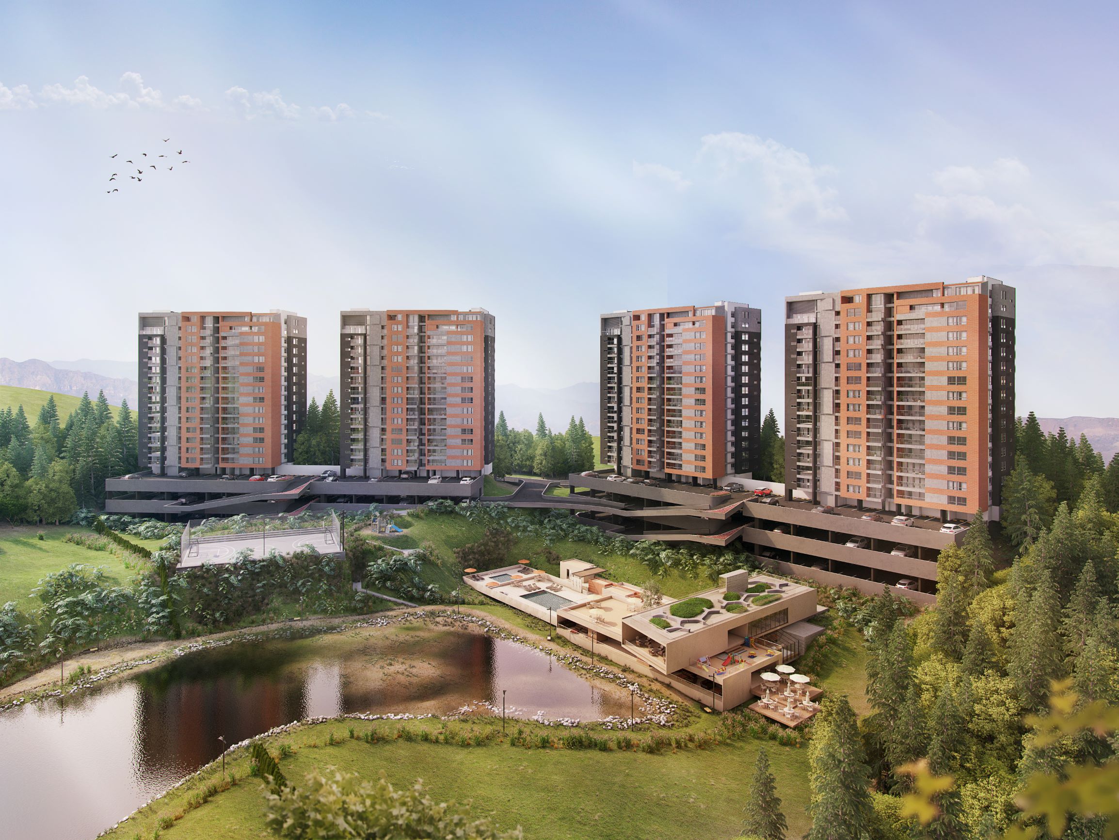Club Verde Terra, es un proyecto en donde el espejo de agua es el elemento estructurante del diseño arquitectónico y urbano. En su entorno natural se desarrollan unas zonas comunes que hacen de este proyecto único en la zona. El diseño interior de los apartamentos ofrece gran flexibilidad , lo que posibilita diferentes formas de ocupación del espacio.